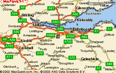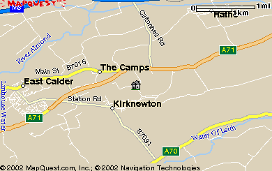 Exit the M8 at J3, onto the A899 signposted to West Calder. At the first roundabout (Lizzie Brices) take the 2nd exit onto the A71 East towards Kirknewton. Ignore signs to Kirknewton, follow the A71 thru the traffic lights, past the two left turns (to Camps Industrial Estate and East Calder) then take the next right (not signposted to any where) but just before the speed limit reduction to 30mph and opposite 3 bungalows on the left.